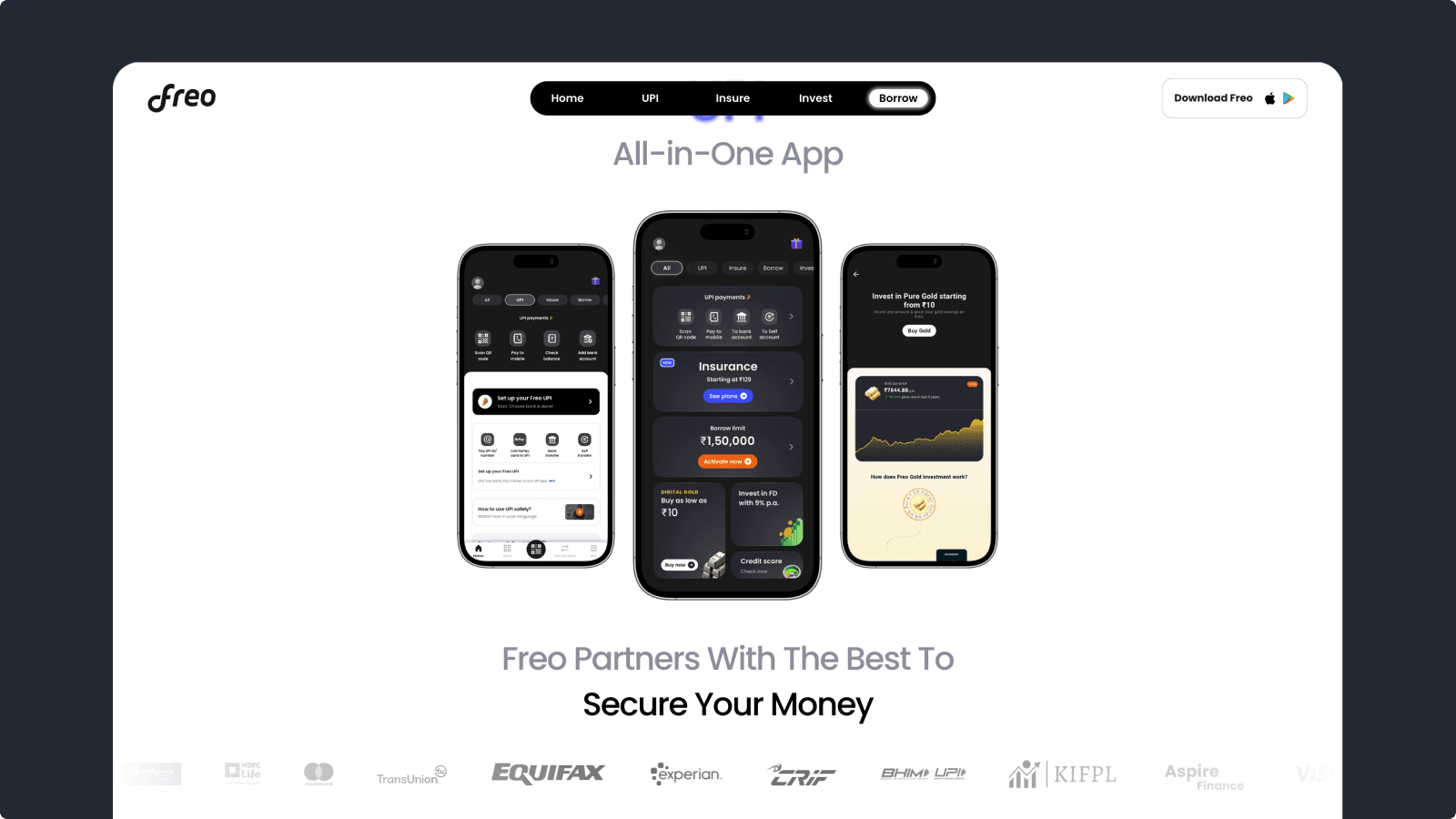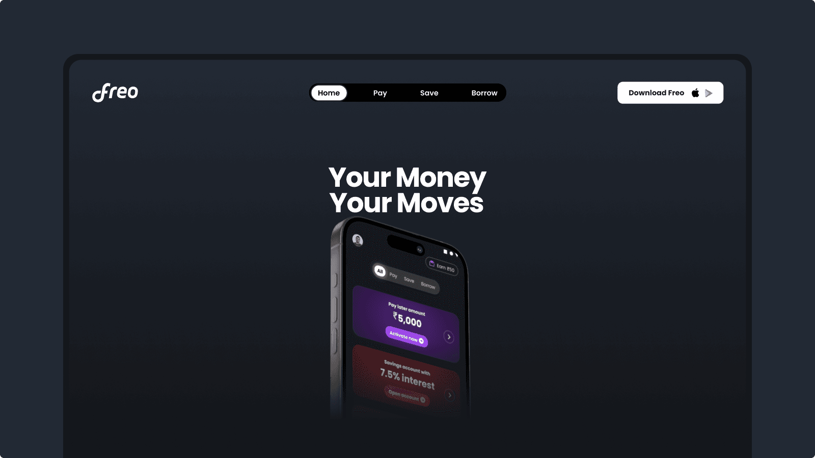 Developed Freo's website in one week using Framer, featuring dynamic scroll interactions and showcasing their core financial offerings with a smooth design.