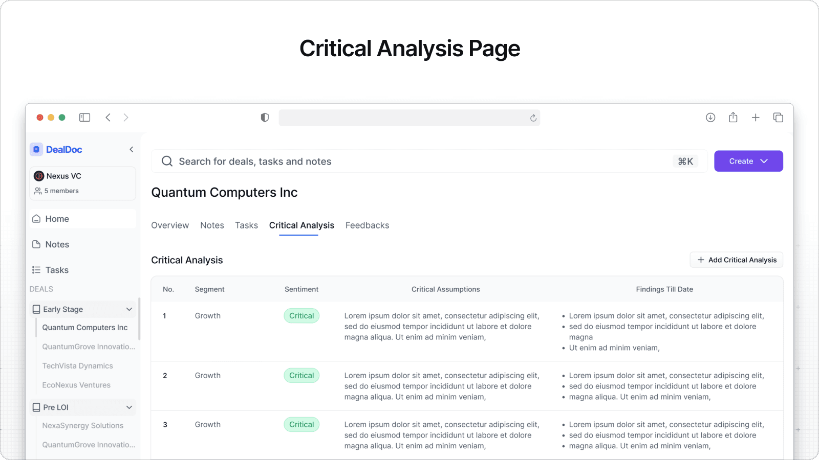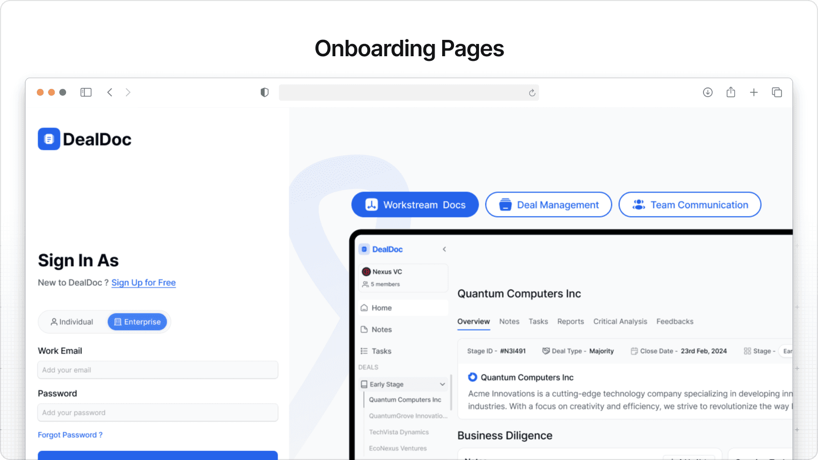 Designed DealDoc from the ground up—built intuitive workflows, crafted a minimal UI for clarity, optimized navigation, and structured an info-dense M&A platform.