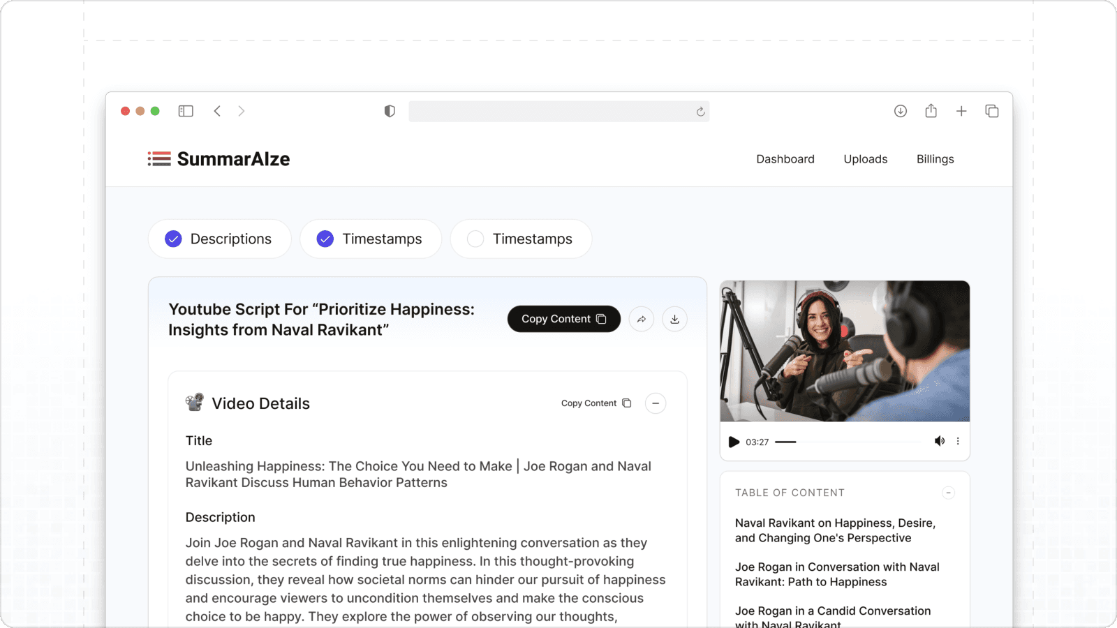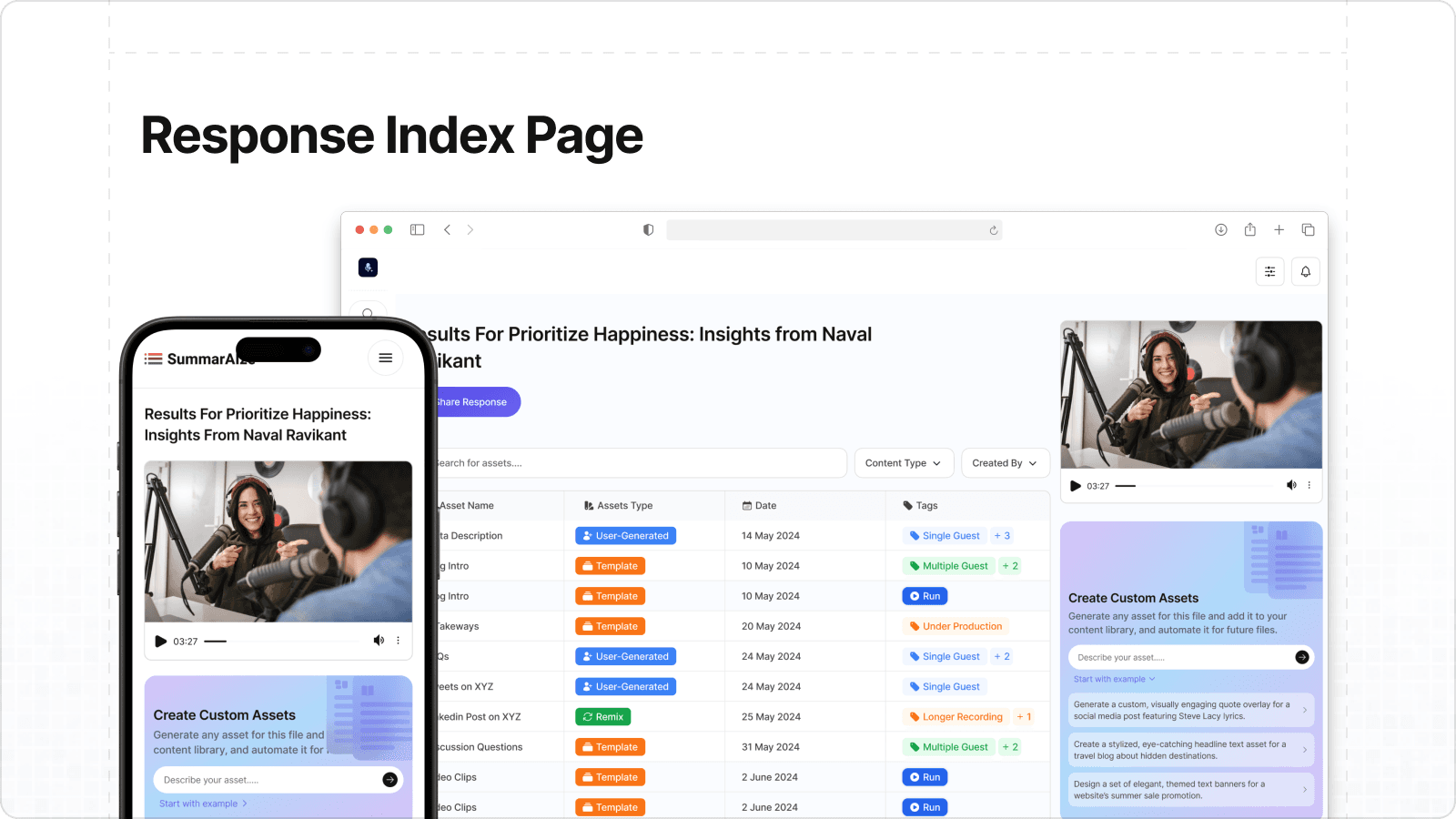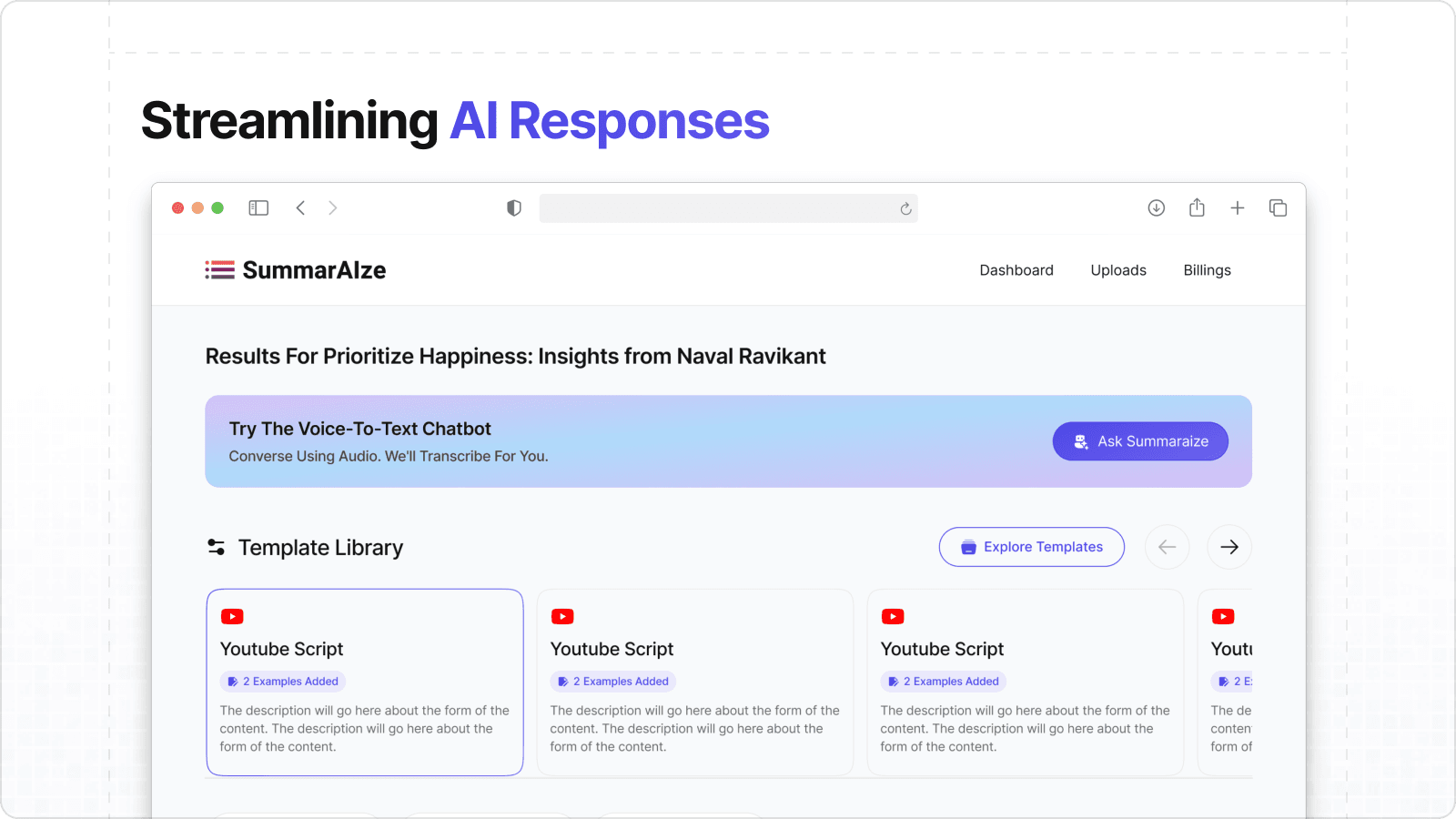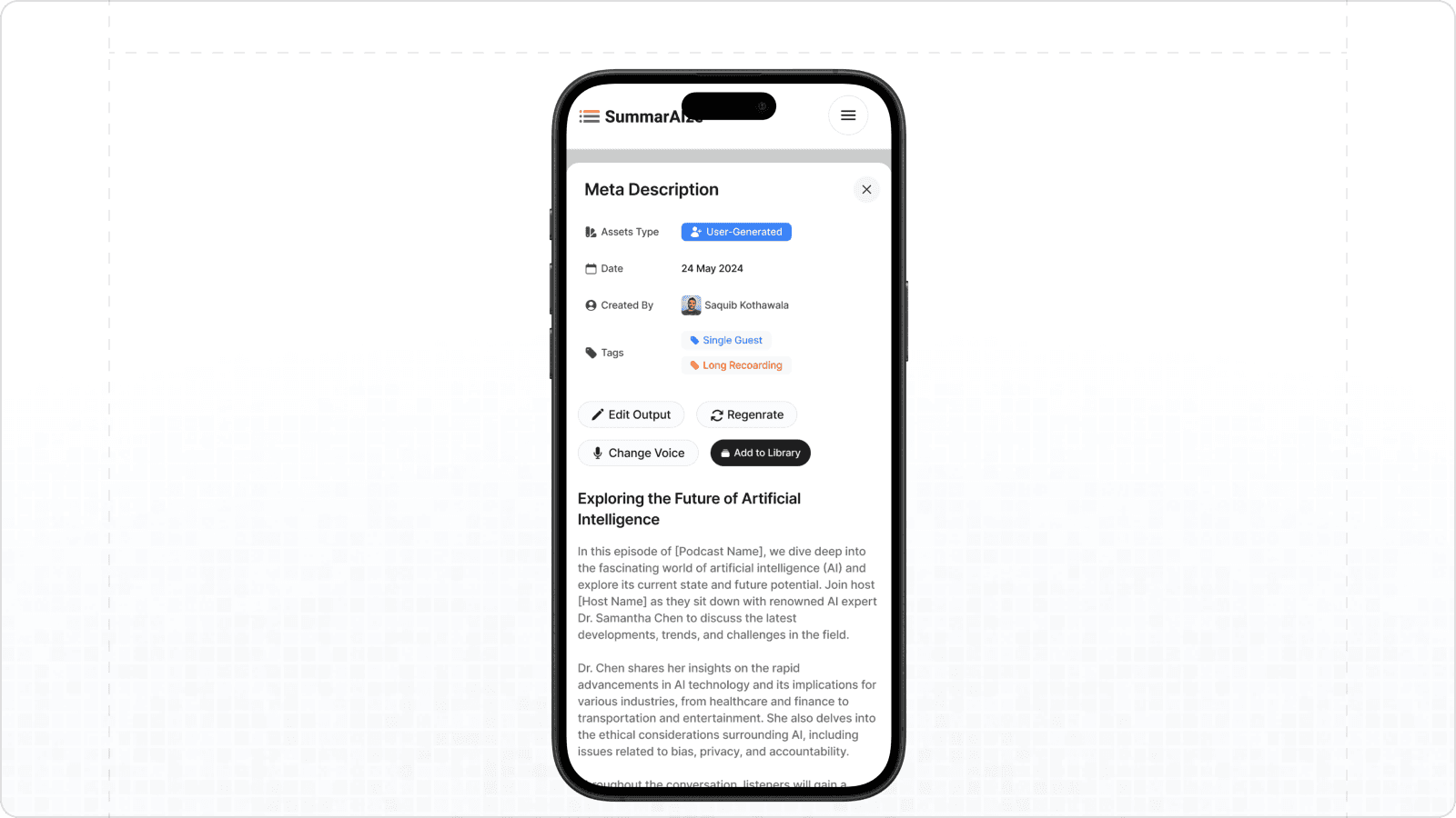 SummarAIze, an AI-powered platform that transforms audio and video content into engaging, shareable formats like summaries, quotes, and social media posts.
