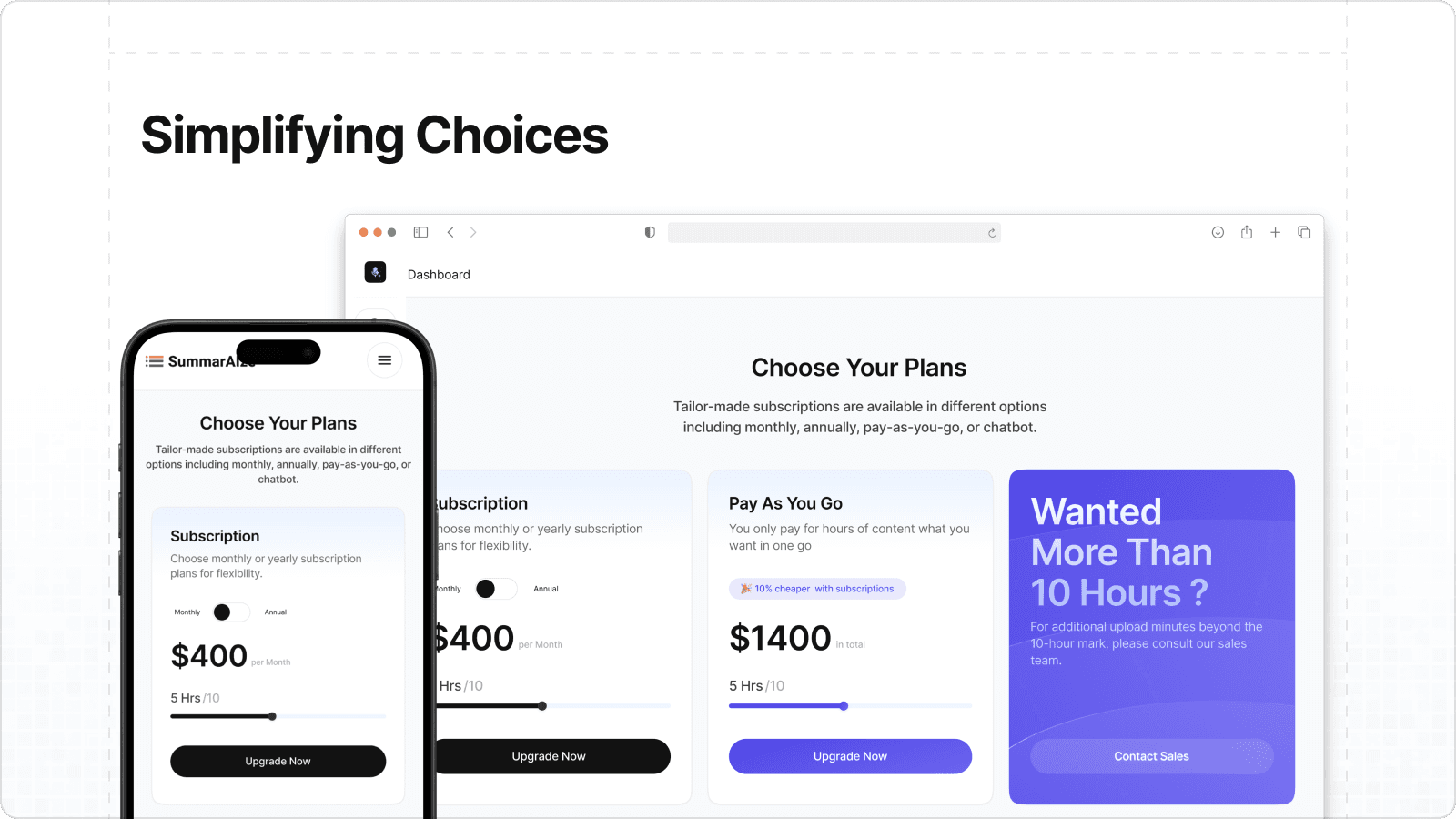 A clean, user-friendly pricing page designed to clearly communicate subscription tiers, feature comparisons, and benefits, aiding users in making informed decisions.