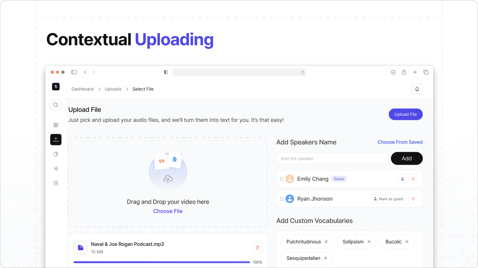 An optimized upload process designed to capture richer context, improving the precision and quality of AI-generated responses.